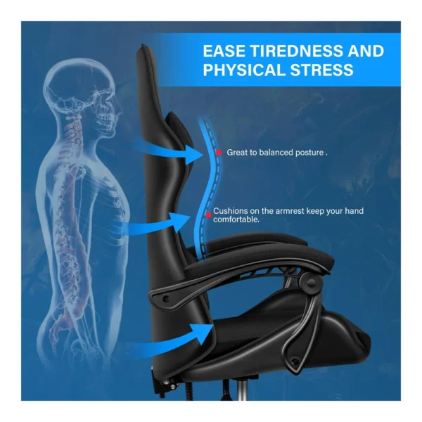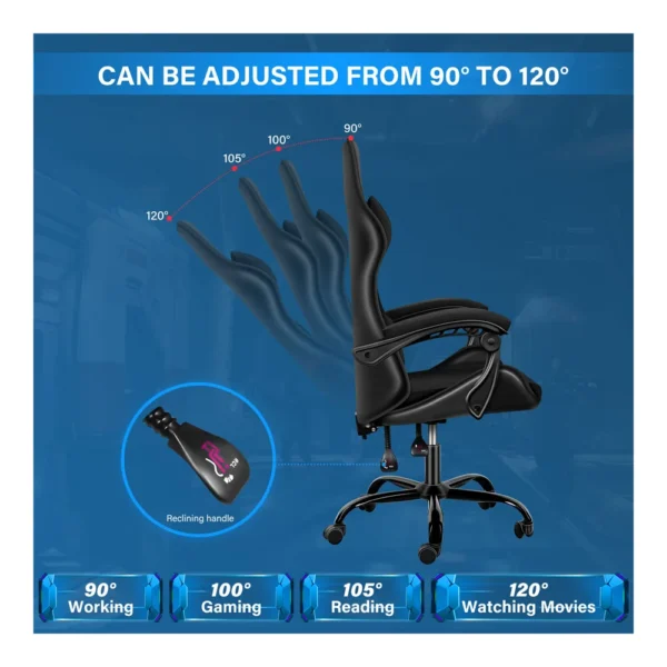 • High Quality The video game chair use high quality materials – durable metal frame, supportive molded foam, soft PU leather and smooth rolling casters.